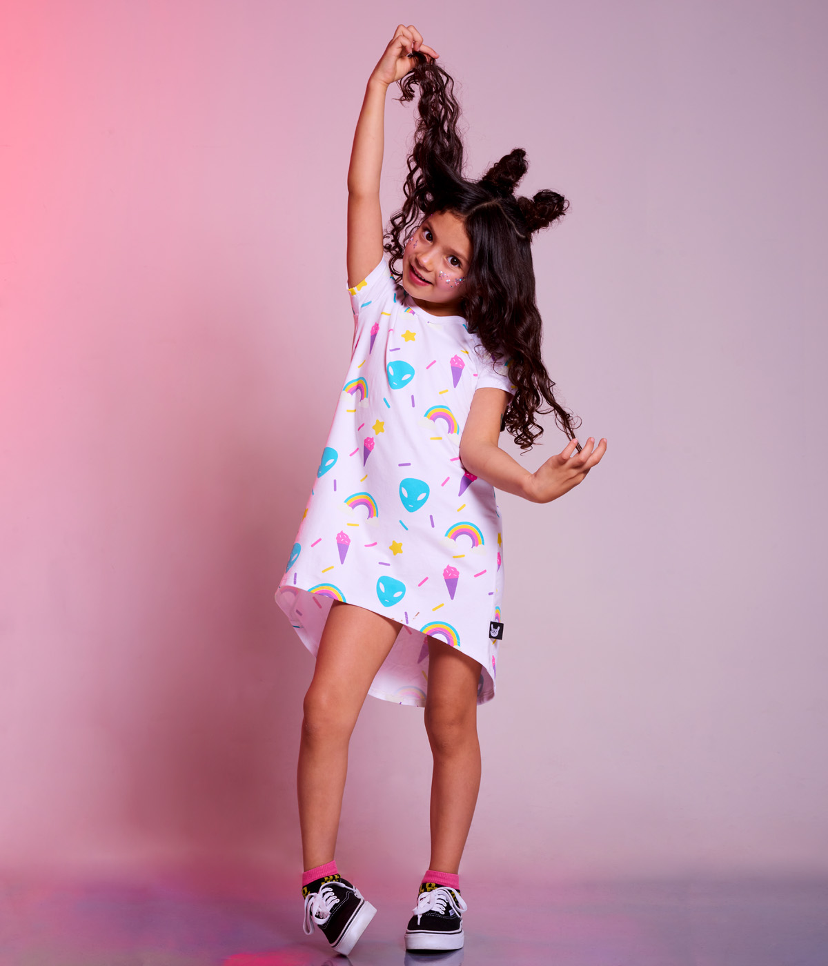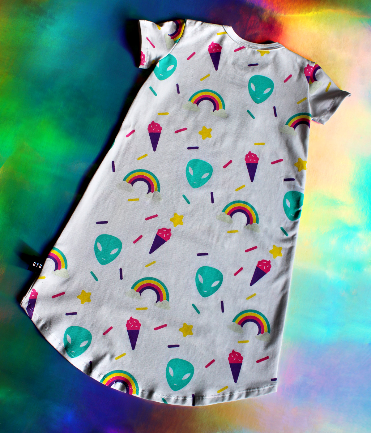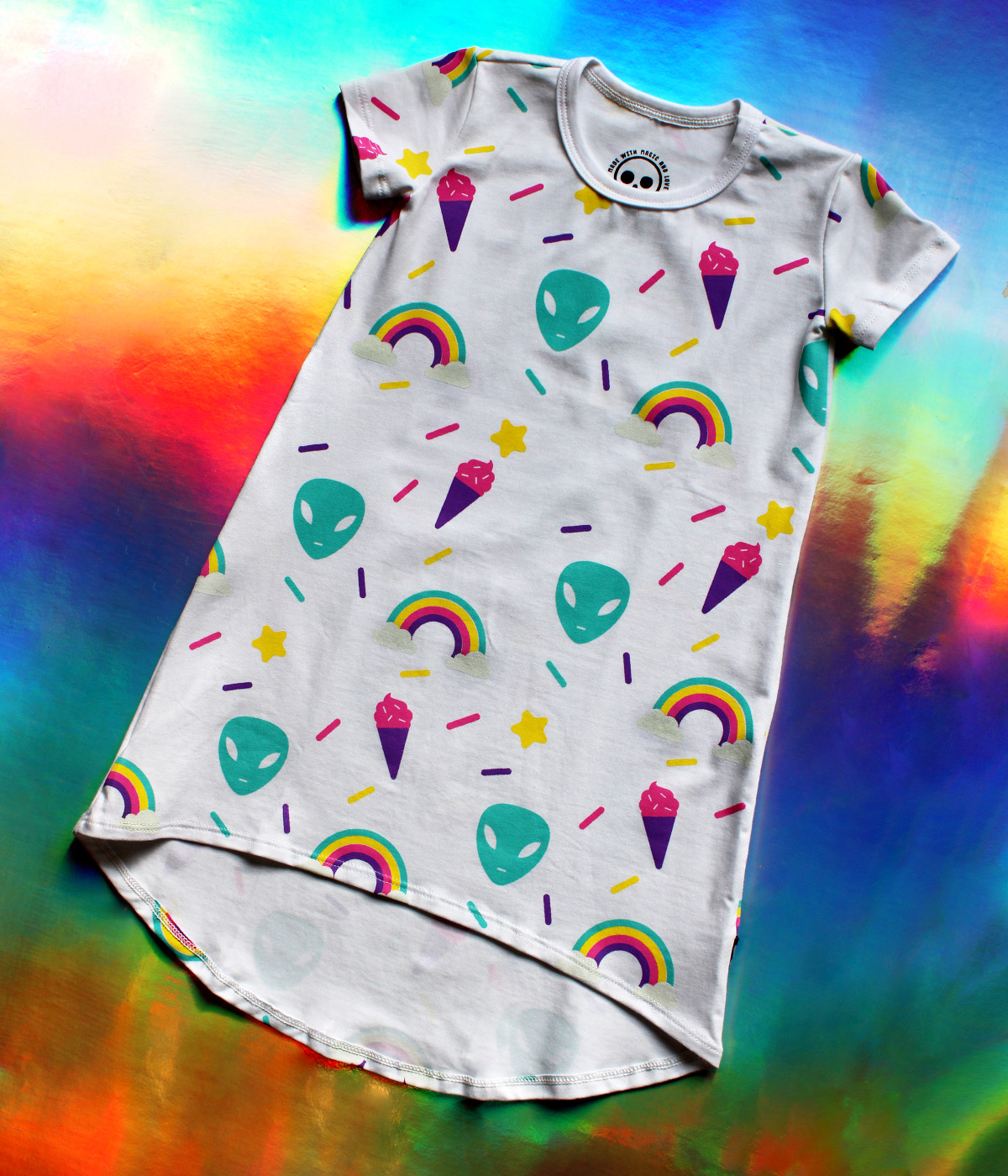 OMG! entre helados, chispas y arcoiris, Los aliens han llegado a nuestra colección Cosmic Rockers! este vestido con un corte muy cool te hará sentir WOW en este viaje interplanetario! puedes combinarlo con nuestras medias Hello Rocker!